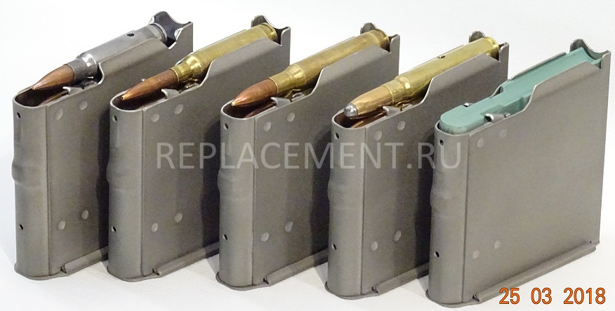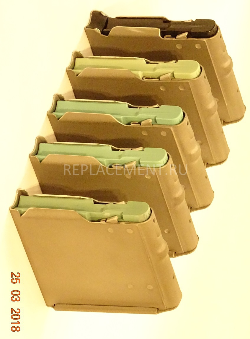 Данные магазины спроектированы и изготовлены под длинную группу ресивера Тикка Т3. Корпус нержавеющая сталь 1мм разборный, пружина нержавеющая сталь, подаватель пластик. Подача патрона ориентированая пулей на центр патроника, в конструкции магазина осуществлена функция удержания патрона от смещения вперёд при отдаче. Возможность использования патрона с максимальной длиной пули. Также конструкция позволяет создавать магазины с ёмкостью до 10 патронов. Магазины на 6 патронов 6.5-55, 30-06, 9,3-62, на 5 патронов 300WM. Вес 200 гр., высота в задней части 88,8 мм. По посадочным размерам и фиксации аналогичен оригинальному магазину Тикка Т3